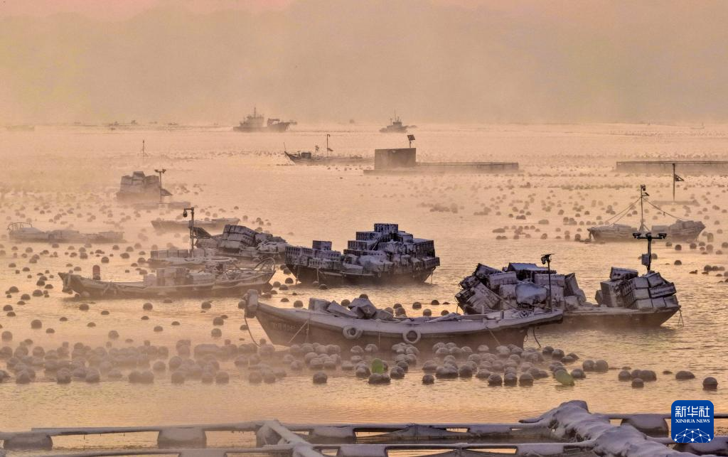 1月12日,雪后的山东省荣成市爱伦湾海洋牧场出现“海浩”景观。据悉,“海浩”景观是一种在严寒天气下出现的自然奇观,表现为海面或湖面上水汽蒸发后遇冷凝结,形成白茫茫的雾气,如同水面沸腾一般。