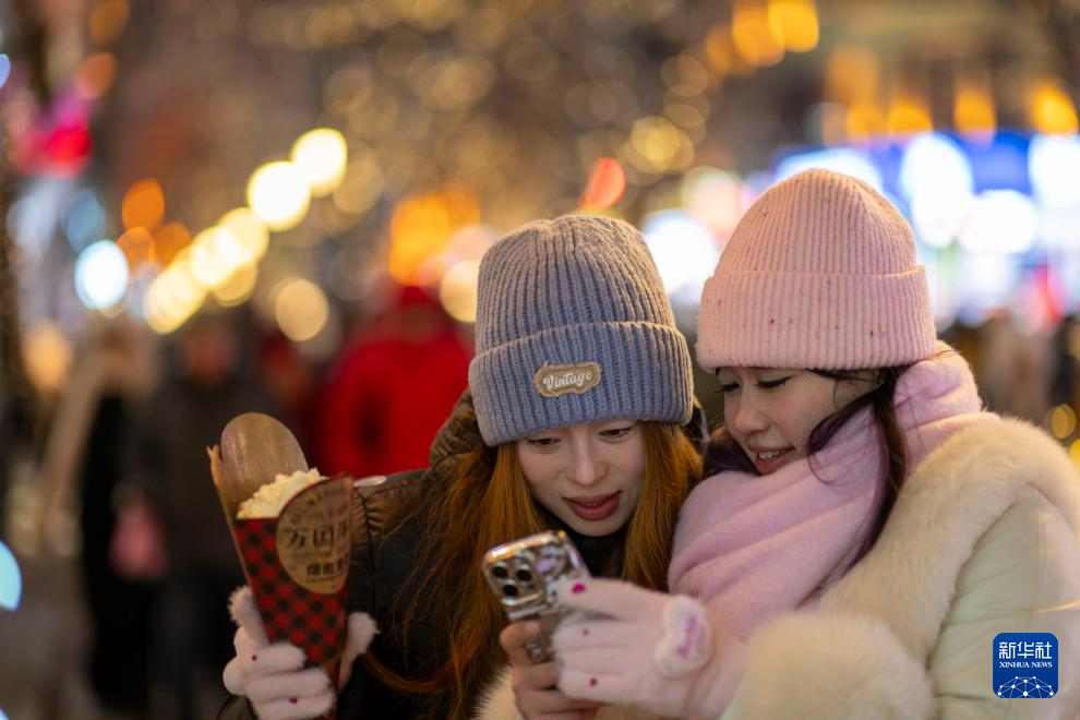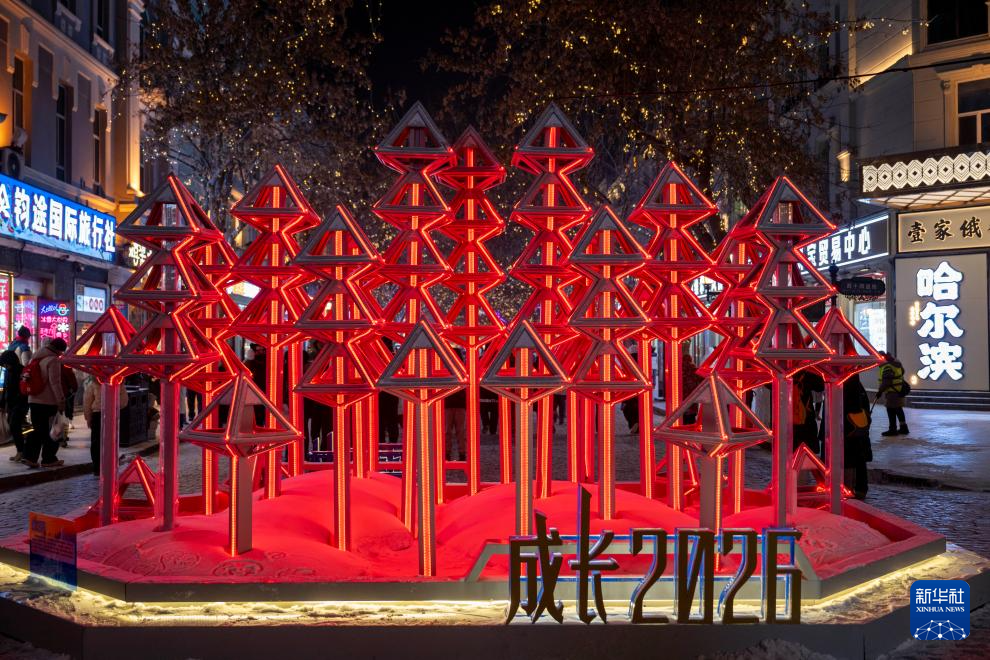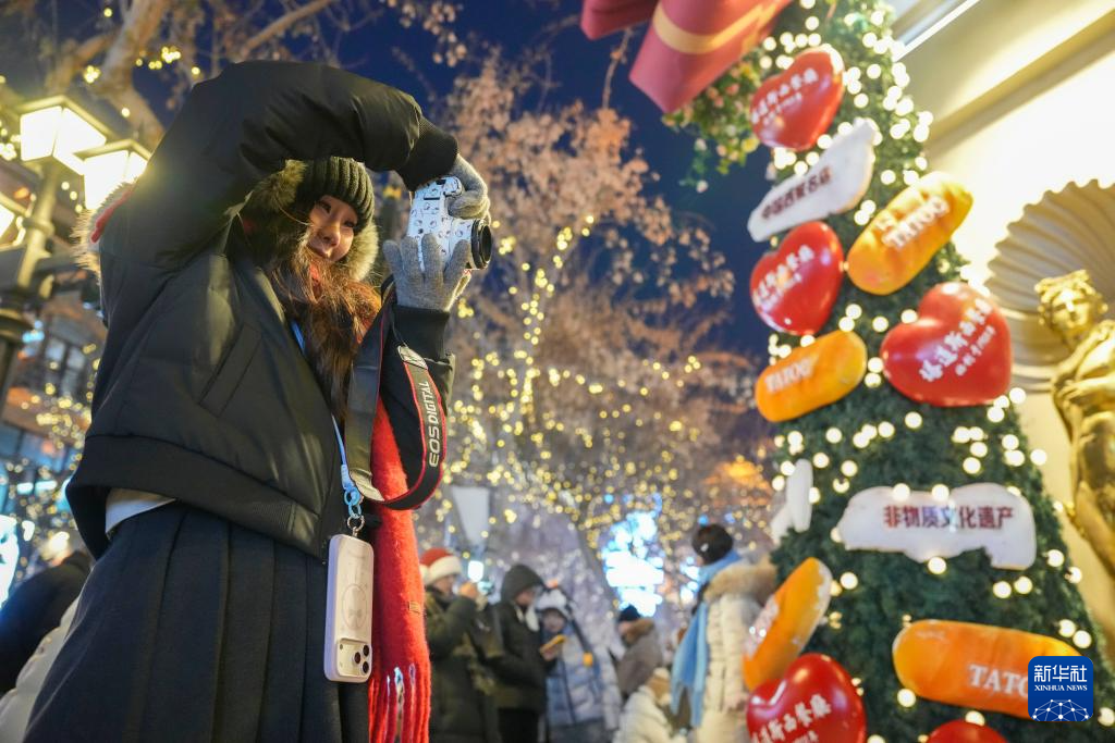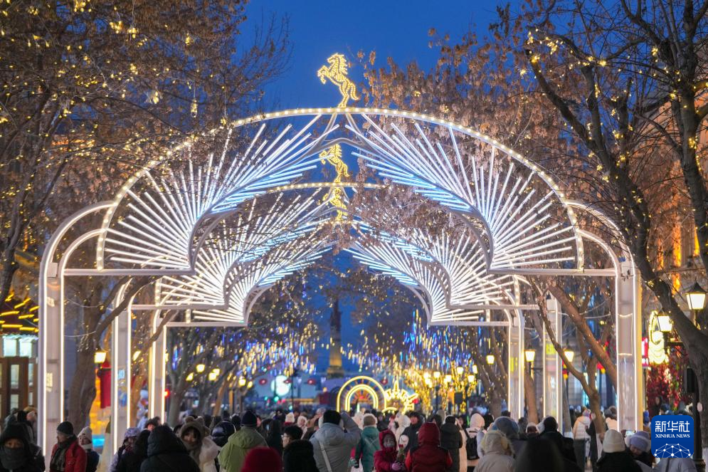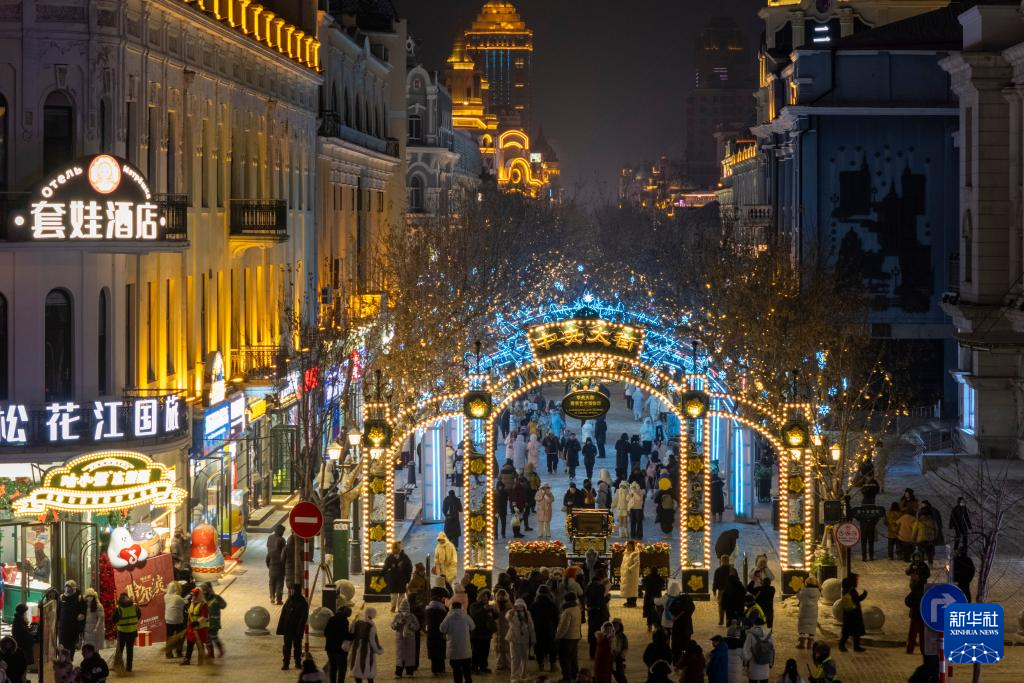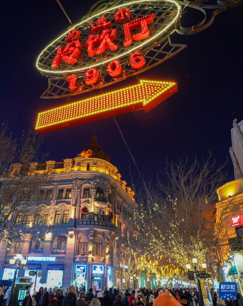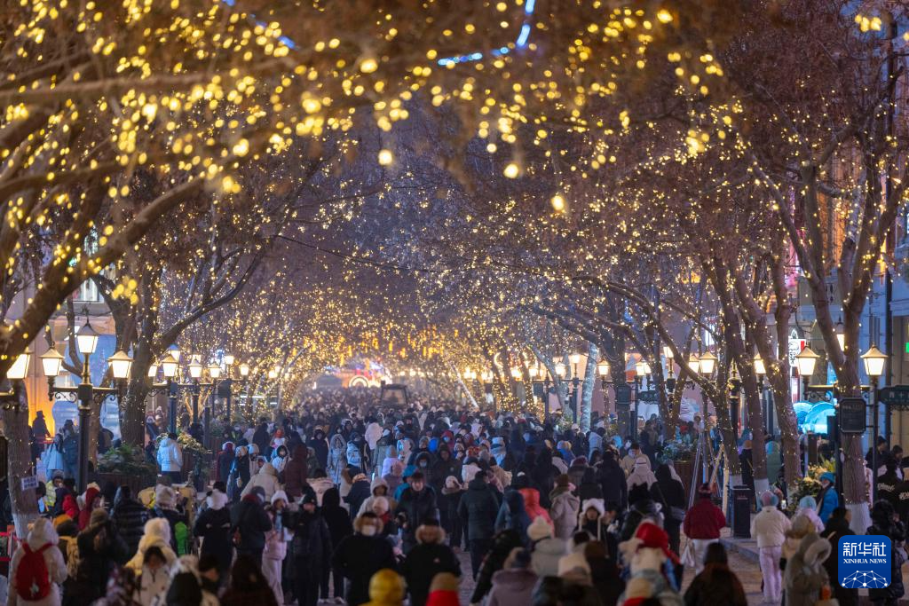 时下,“冰城”哈尔滨正值冰雪旅游季。夜幕降临,百年老街中央大街被璀璨灯火点亮,游客置身其中,仿佛步入流动的冰雪艺术长廊,令人流连忘返。