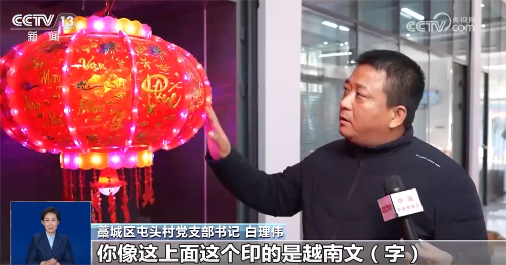 藁城区屯头村党支部书记白理伟:通过宫灯博览会,对接了市场、增加了客户,你像这个上面印的是越南文字,一些吉祥话,这是近两年新开发的产品。