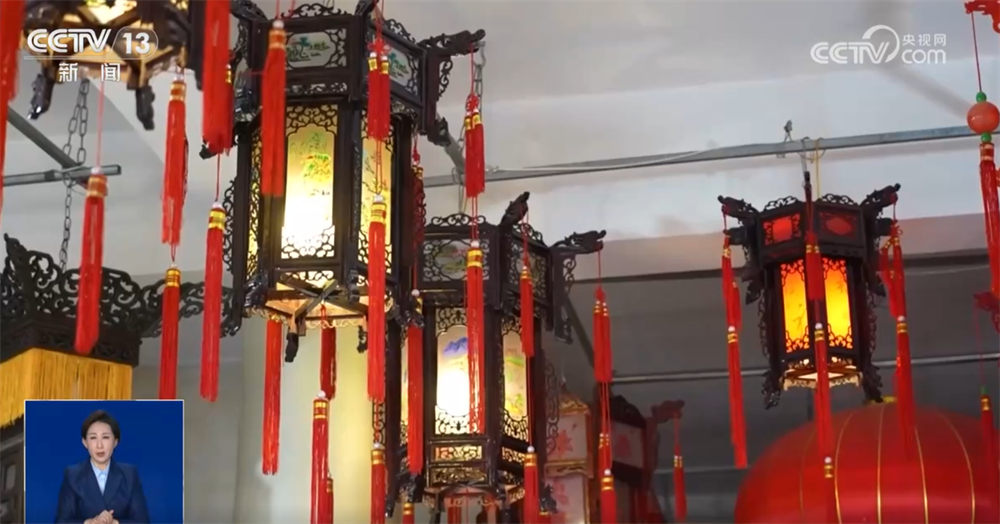 某宫灯厂负责人白会平:通过跟大专院校合作,研发新的产品,每年都得有一个新的突破。现在我们国潮风的灯笼特别受年轻消费群体的喜欢。原来我们是单一的几个品种,现在发展到18个大的系列、300多个品种,而且根据客户的要求还可以量身定做。