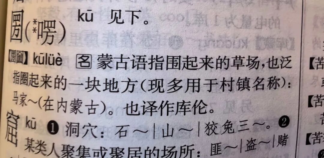 它并非生造,而是蒙古语“围起来的草场”khüree 在晋语与西北官话里的音译化石;其远祖可追溯至14世纪《史集》《蒙古秘史》中的“古列延”(küriyen,意为“圈子”或“营”)。清代中后期,该词已广泛出现在北方文书与舆图,汉字写作“圐圙”“库伦”或“圐囵”,并被《现代汉语词典》《汉语大字典》正式收录为蒙古语借词。
