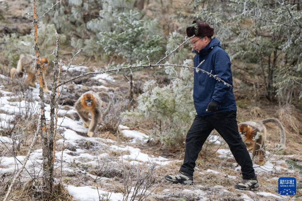 1月19日,研究员李书航在神农架国家公园大龙潭金丝猴野外研究基地查看金丝猴群情况。