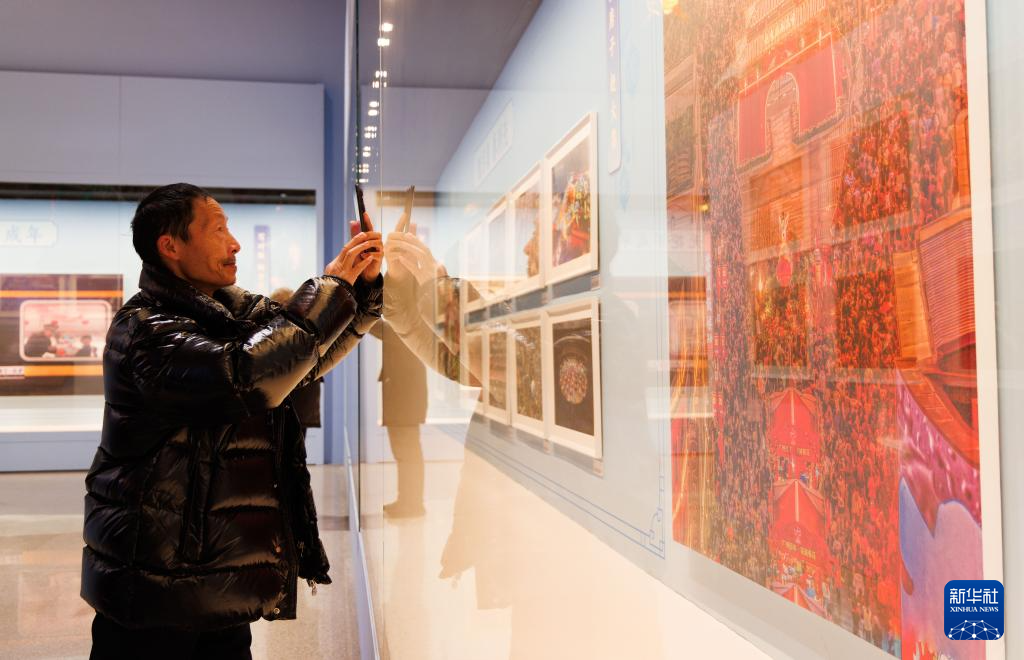 1月26日,在中国非物质文化遗产馆举行的展览现场,观众用手机拍摄展览作品。
