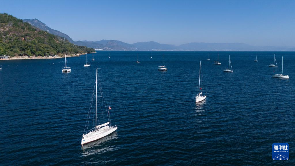 冬日抚仙湖碧波荡漾,风光宜人,吸引不少游客前来游览。