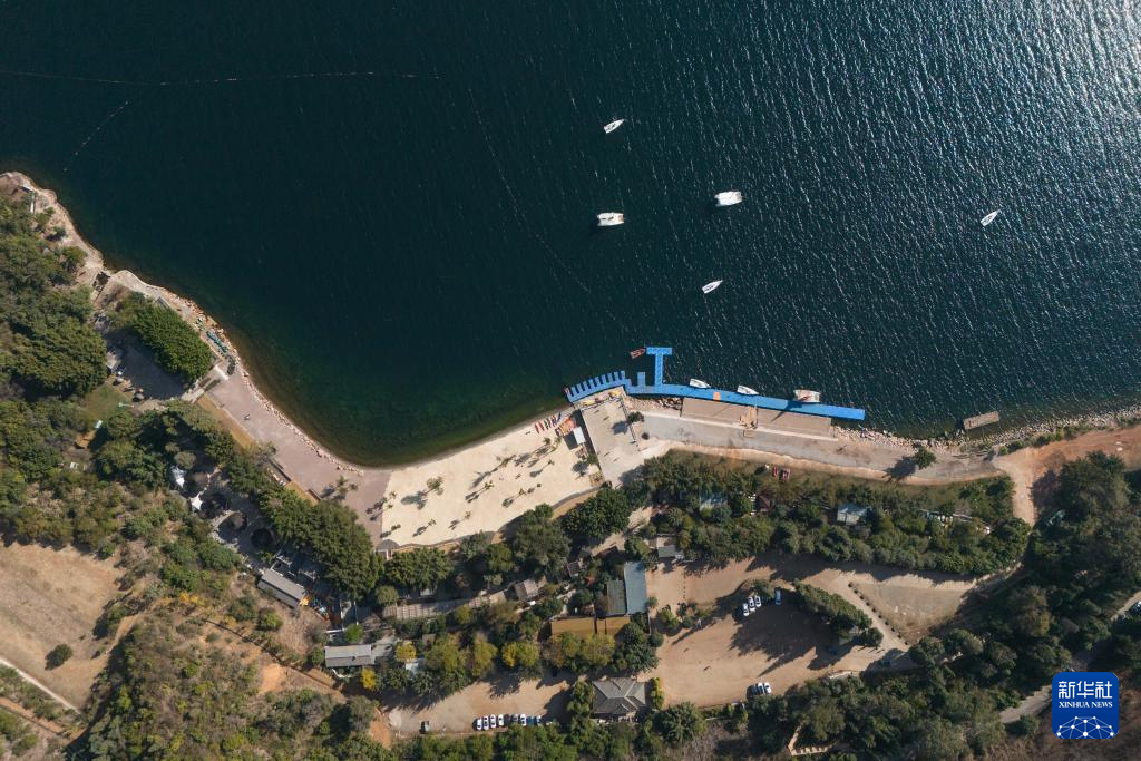 1月27日在云南省玉溪市拍摄的抚仙湖一景(无人机照片)。