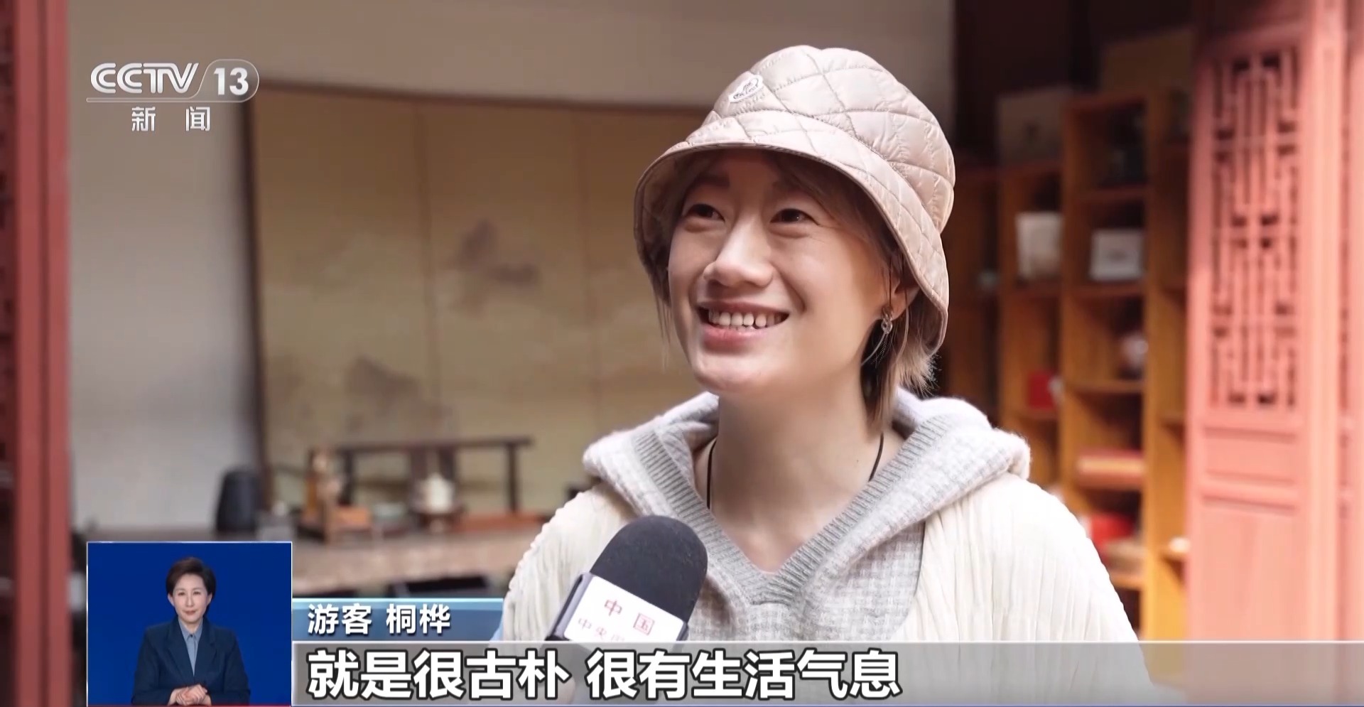 游客 桐桦:我觉得闽南文化的感觉特别强,就是很古朴,很有生活气息。看了金苍绣,很多很多的针法,我第一次了解金苍绣,特别震撼。