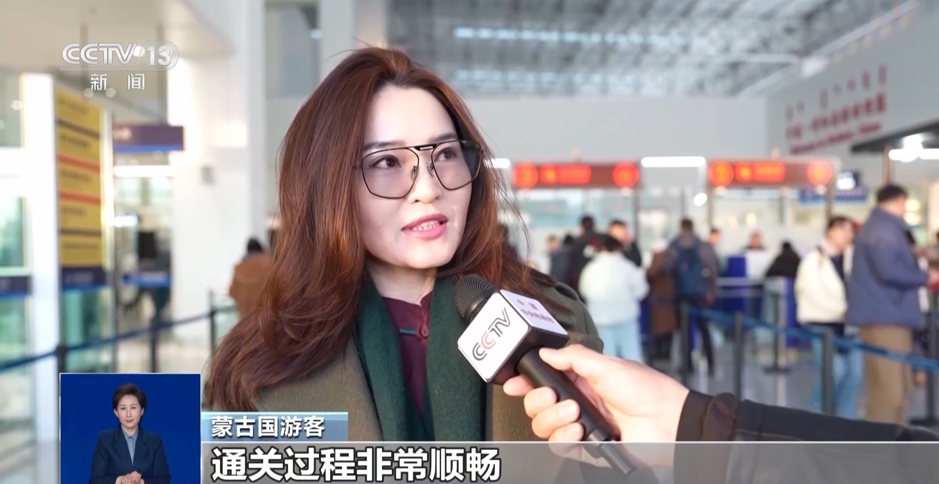 呼和浩特边检站执勤二队副队长 冯聚立:我们优化查验流程,共开设人工查验通道6条、快捷通道3条,并在现场配备手持翻译设备,加强多语言引导服务,使旅客平均通关时间缩短20%,基本实现“随到随检、顺畅通关”,让外国游客第一时间感受到中国的热情与便利。