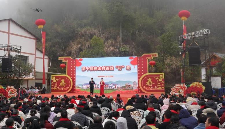 神山村举办的联欢活动现场(2月1日摄)。