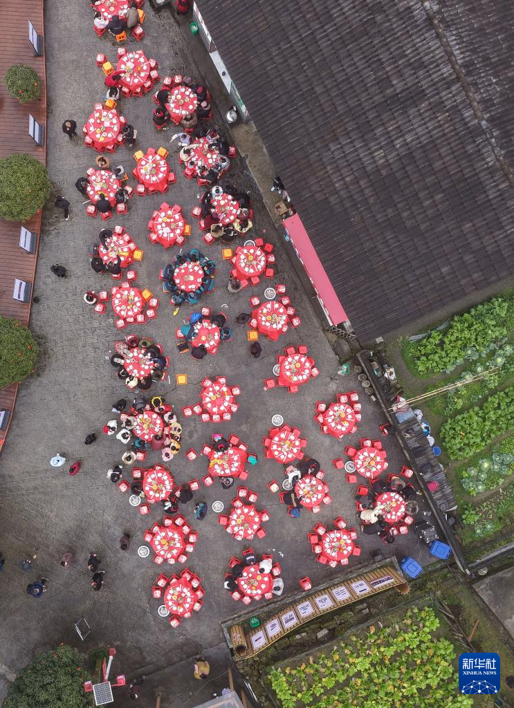 这是神山村举办的“神山宴”活动现场(2月1日摄,无人机照片)。