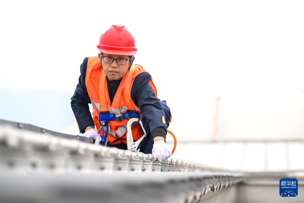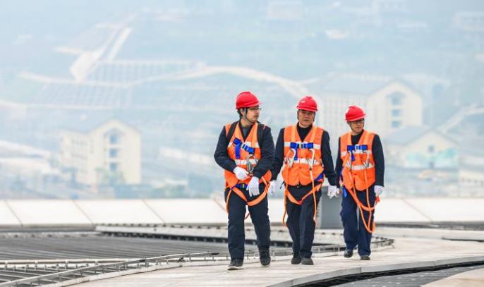 每次作业,他们都需背负工具,沿坡度近80度的爬梯攀至百米高的站房屋顶,在检修步道和马道上穿行,通过连续3至4天的接力作业完成全部检查,排除隐患,确保枢纽“筋骨”强健、运行无虞。