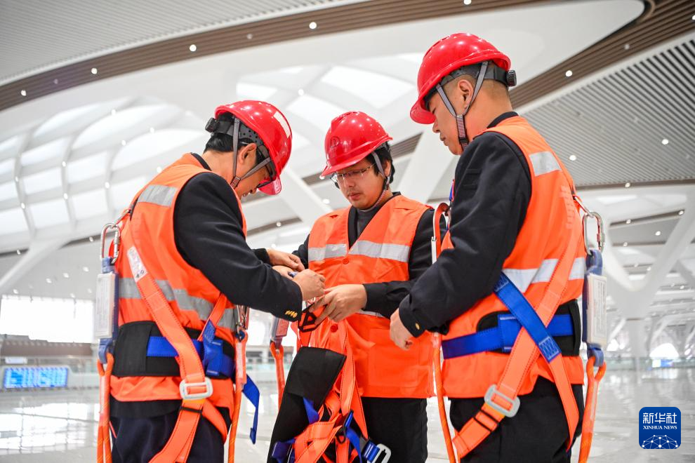 蹇洲、胡渝平、鲁奇是中国铁路成都局集团公司重庆房建公寓段重庆东房建工区的巡检维修工,他们的日常工作是对重庆东站站房进行巡查巡检,排查站房外墙、顶棚、玻璃等所有结构部件的安全隐患,保障重庆东站站房的运行安全。