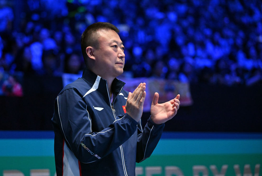 2月4日,教练马琳在比赛中为孙颖莎鼓掌。新华社记者 郭程摄