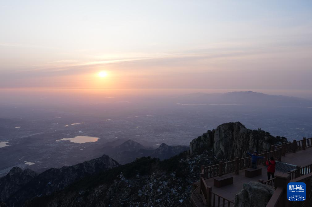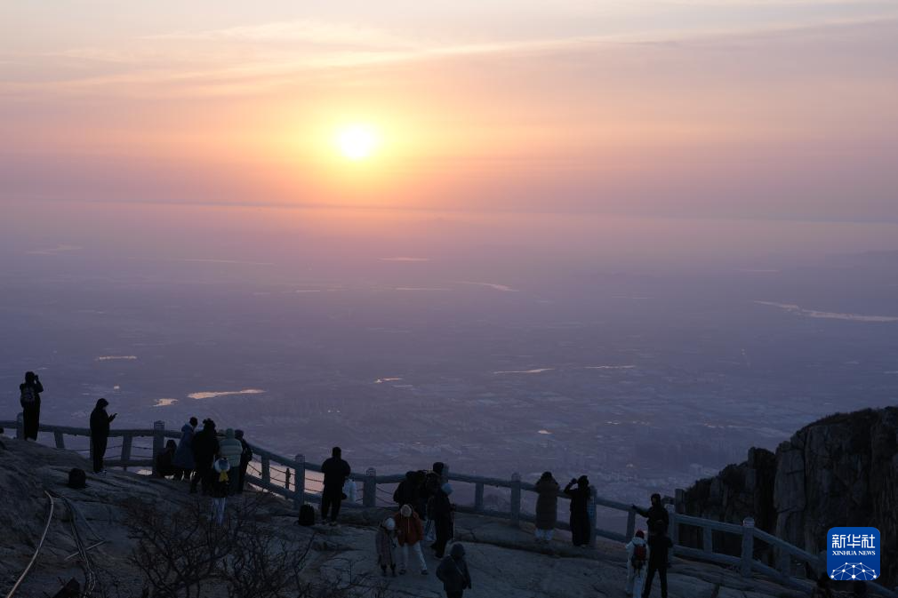 2月6日,游人在泰山瞻鲁台景区等候日出。