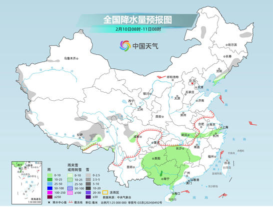 总体来看,此次雨雪强度普遍不强,但贵州、湖南、广西等地部分地区降水频繁,多地可能降雨天天见,需持续做好防雨措施,注意交通安全。