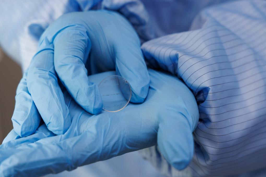 科研人员展示即将进行实验检测的月球样品。新华社记者 金立旺摄