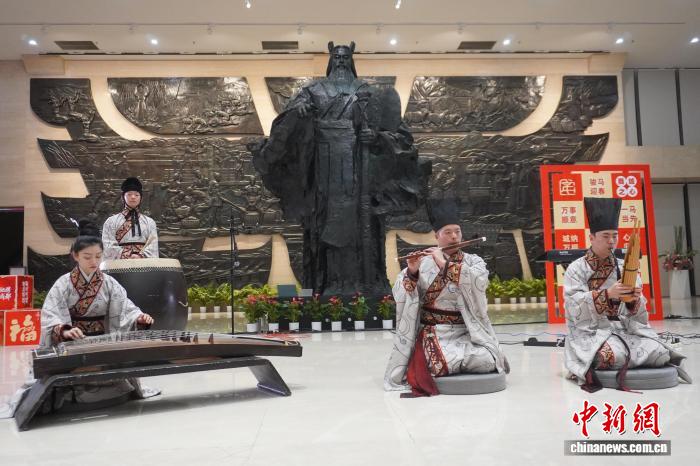 2月10日是农历腊月二十三,中国北方小年。当晚,在河南郑州商代都城遗址博物院,一场中西合璧的音乐会吸引中外观众驻足,在音乐声中共度小年夜。图为华夏古乐演奏。中新社记者韩章云 摄