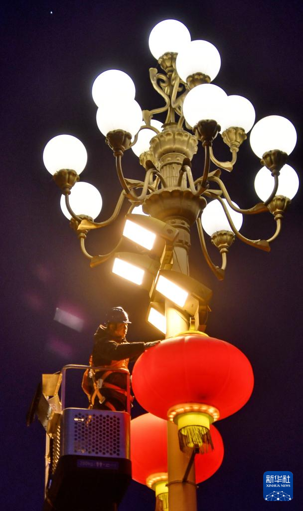 春节将至,北京长安街及其沿线安装了1000多套大红灯笼、中国结、串灯等照明灯饰。春节景观布置遵循“利旧复用”原则,所使用的大红灯笼、中国结及串灯等均延续使用去年的设施,灯笼灯饰利旧率达90%。
