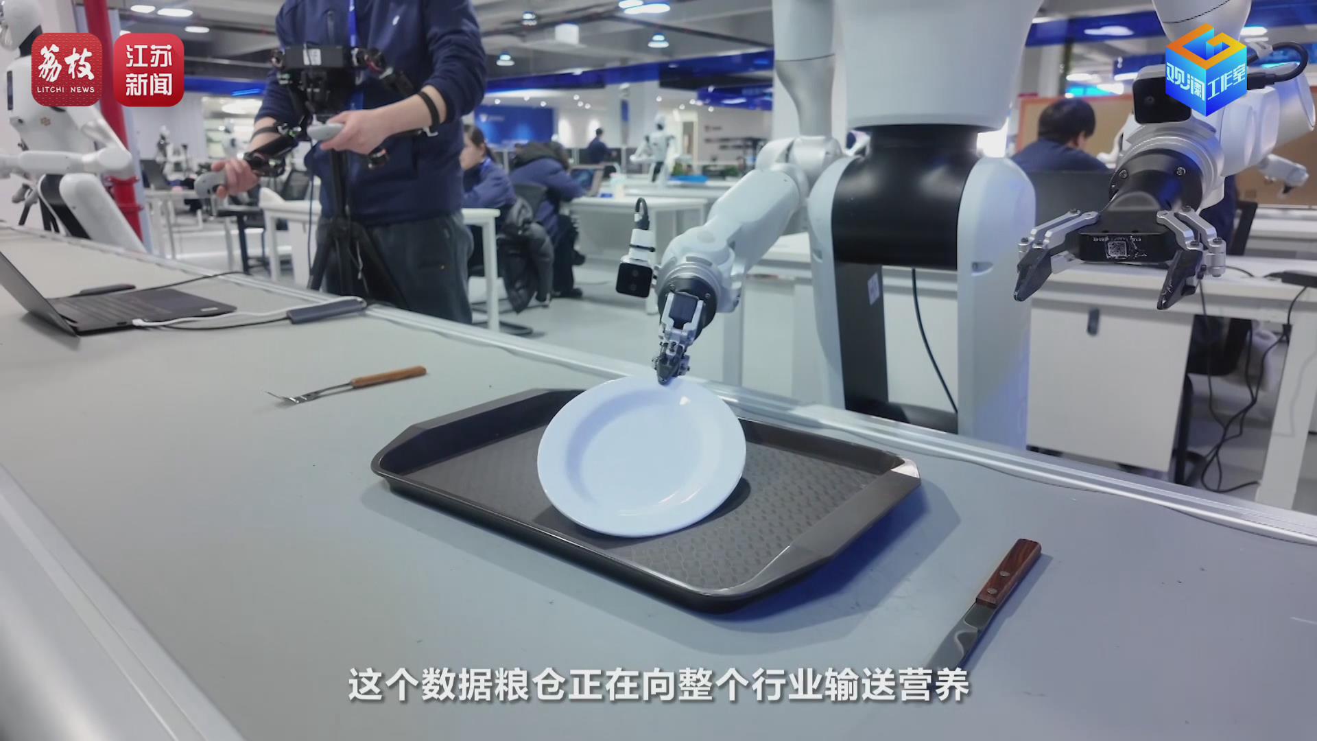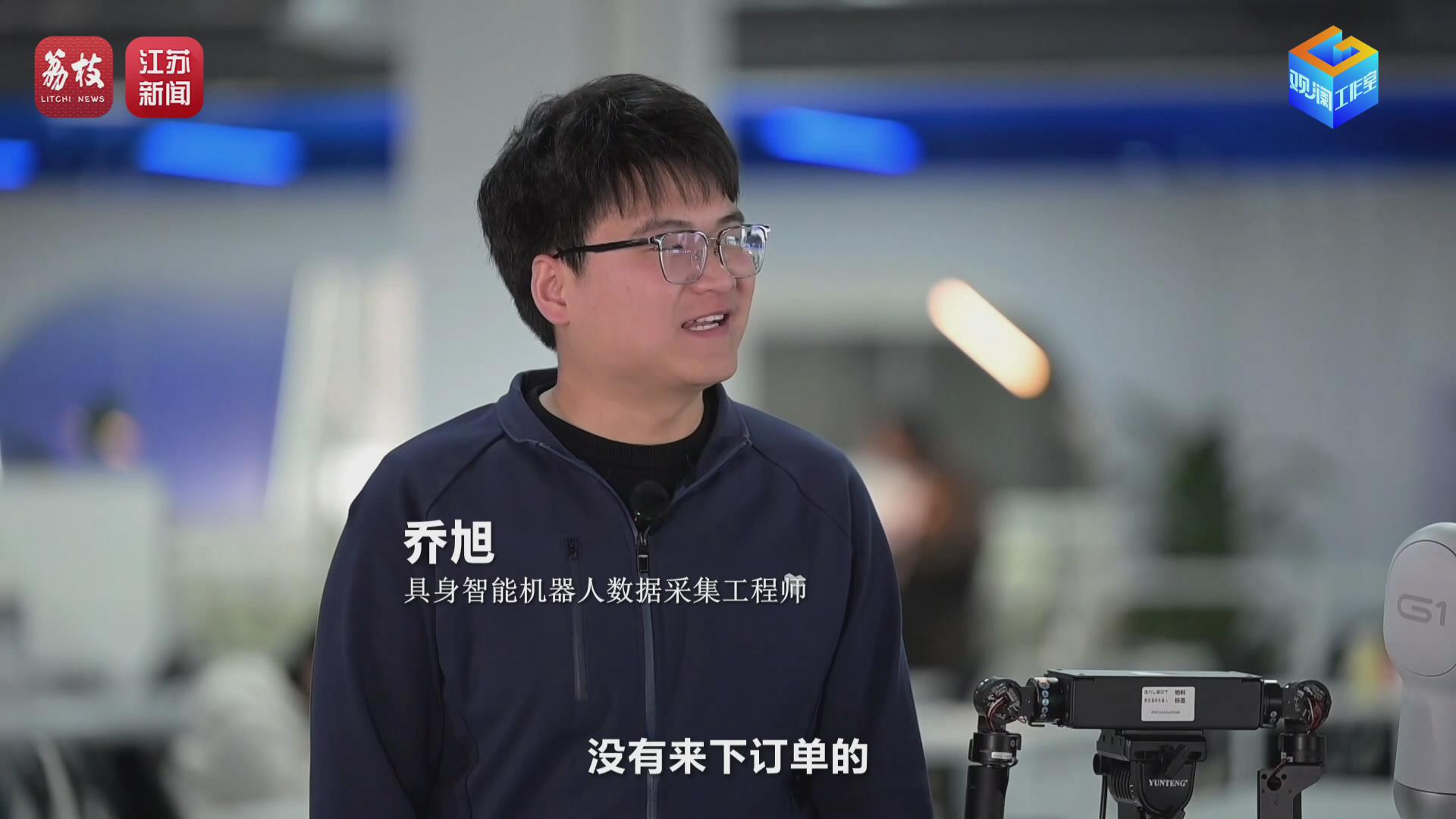 2026年2月,荔枝新闻中心观澜工作室记者姜超楠在位于无锡的江苏省具身智能机器人工业数据采集与实训中心见到了正在教“赛博小伙”学干活的乔旭和他的伙伴们。乔旭,2025年应届毕业生,才工作就搭上了具身智能发展的“高铁”,成为 江苏第一批具身智能机器人数据采集工程师。