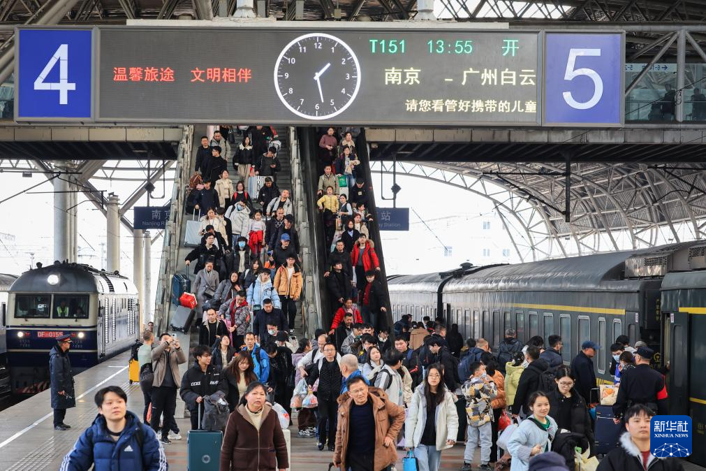 2月13日,旅客从南京火车站出行。