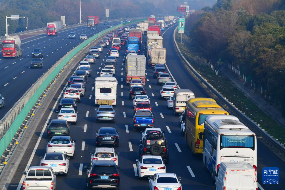 2月13日拍摄的京沪高速江苏无锡段的车流。