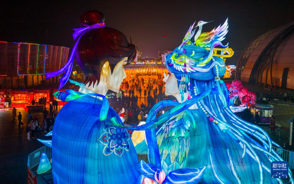 2月10日,河南省三门峡市陕州地坑院灯会展区游人如织(无人机照片)。