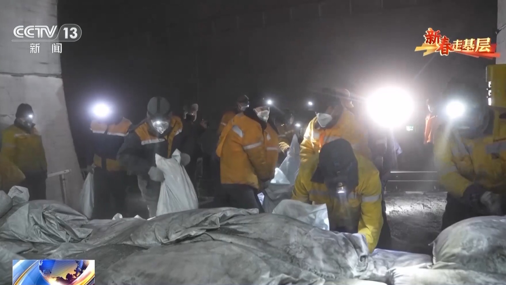总台记者崔宁:阿尔金山隧道的最高海拔大约是3550米,站在这里感觉喘气非常困难。像这样一个袋子,它的重量大概是25公斤到30公斤。今天大家要清理五六百袋这样的煤灰,体力消耗非常大。