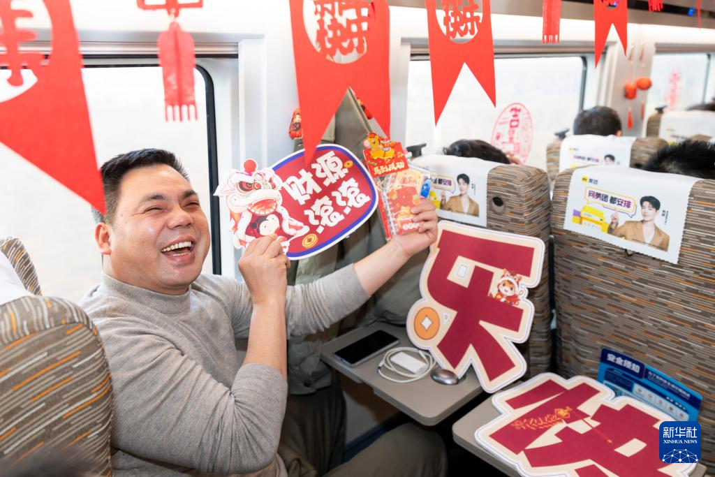 2月15日是春节假期首日,一场别开生面的“列车春晚”在上海虹桥开往汉口的G452次复兴号列车上举行。列车工作人员带来舞蹈、歌唱等表演,并与旅客进行互动游戏,送上新春祝福。
