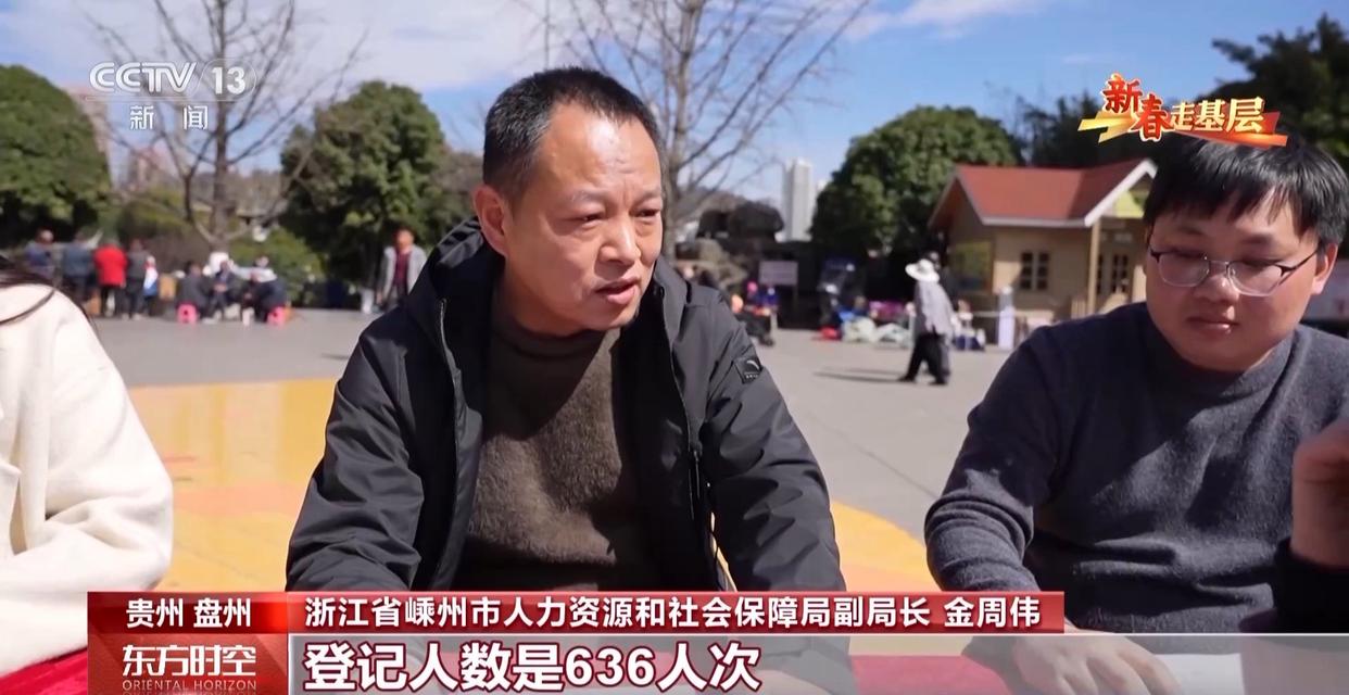 总台央视记者唐蕾:这里是贵州盘州市春风行动招聘会现场,我们看到前来咨询的劳动者非常多,气氛非常火爆,来自浙江、江苏、贵州等地的65家企业带来了3000多个岗位。