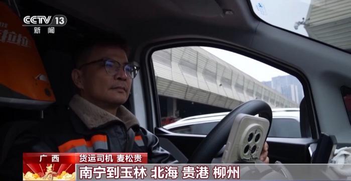 货运司机麦松贵:春节这几天主要运的是水果、蔬菜、生鲜、窗帘和礼品。广西内线路主要跑南宁到玉林、北海、贵港、柳州;出广西就是湖南、湖北、广东、江西。