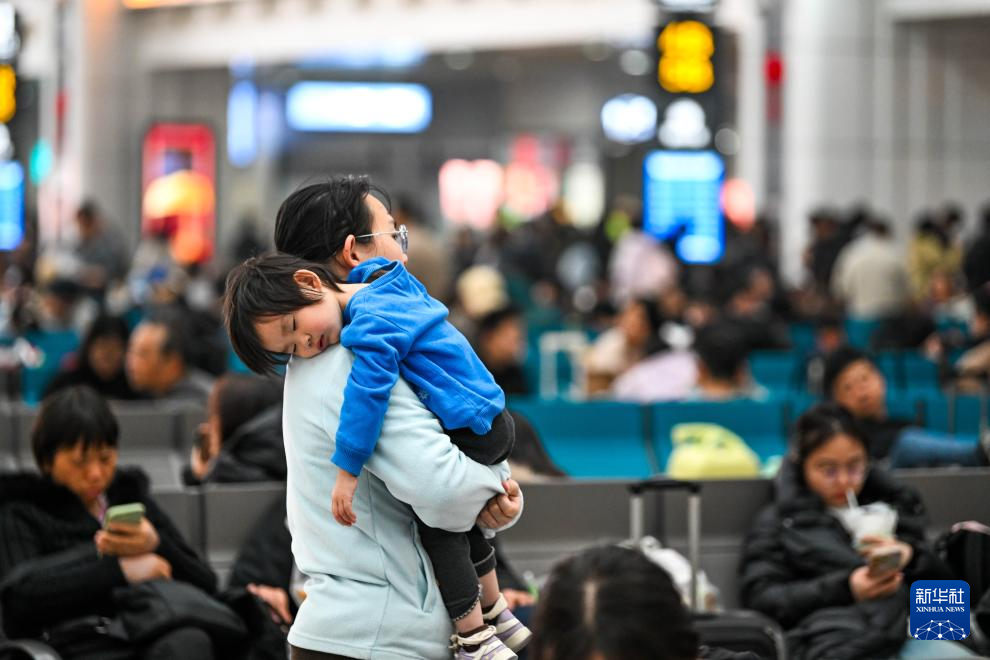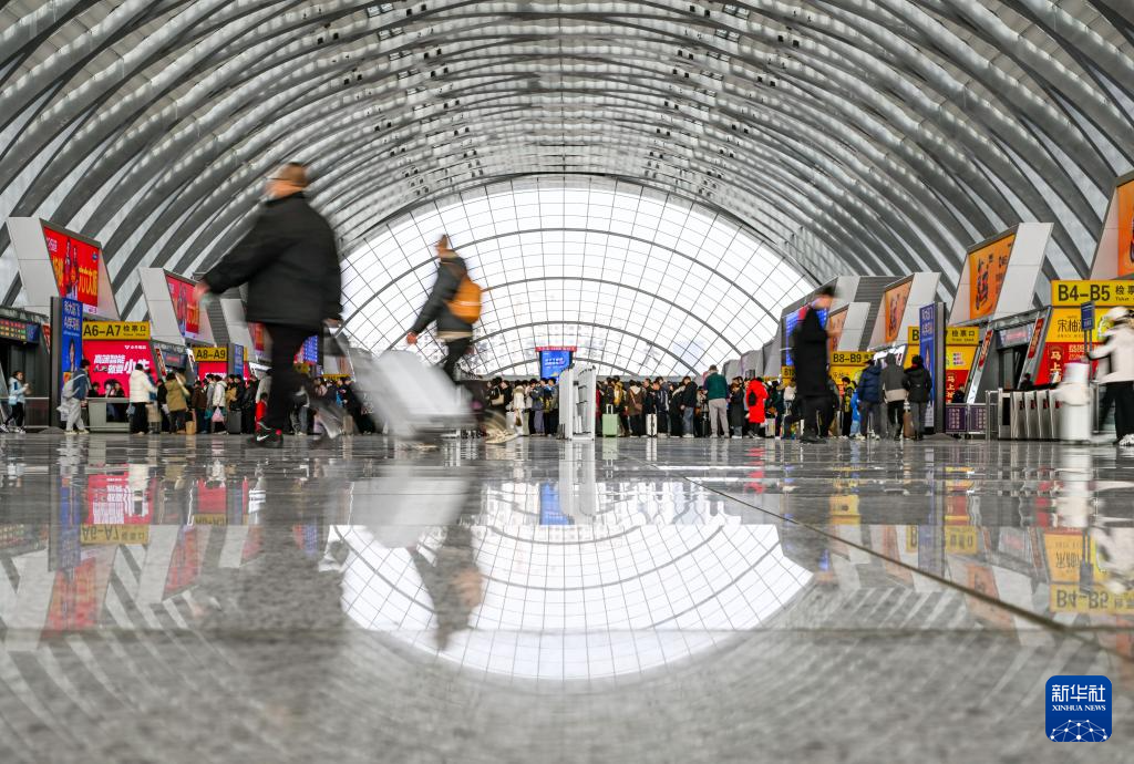 2月23日,旅客在重庆北站候车大厅等待乘车。