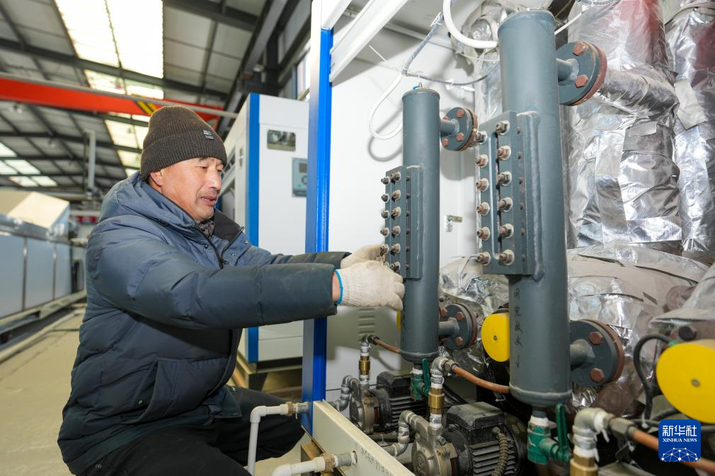 2月28日,在位于双鸭山市的黑龙江北大荒农业股份有限公司友谊分公司,工作人员检修水稻智能育秧设备。新华社记者 王松 摄