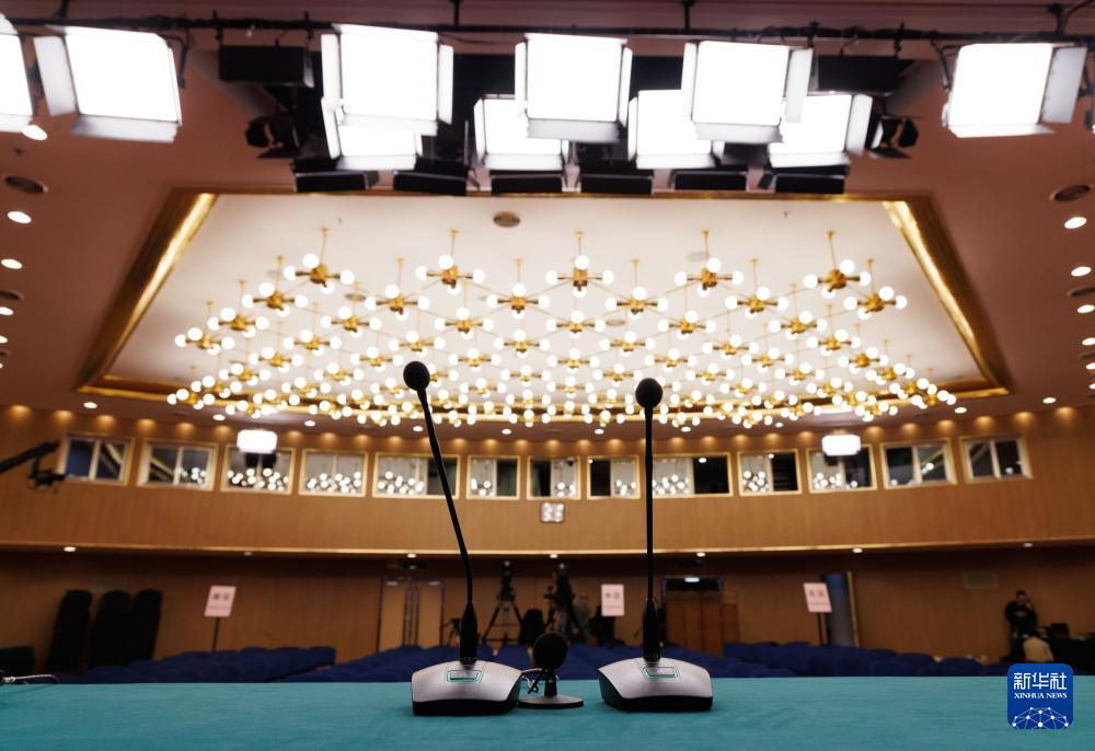 这是2月27日拍摄的全国两会新闻中心新闻发布厅。