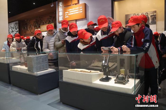3月1日,2026年青海省大中小学生“走进原子城”爱国主义教育活动启动,近500名大中小学生走进海北州海晏县原子城纪念馆,开启“开学第一课”。青海原子城纪念馆是中国唯一全面、系统介绍中国原子能科学技术事业和核工业创建与发展历程、原子城特殊历史与辉煌成就的大型综合性专题纪念馆,也是两弹历史的核心纪念地。图为学生在原子城纪念馆参观展品。中新社记者张忠苹 摄