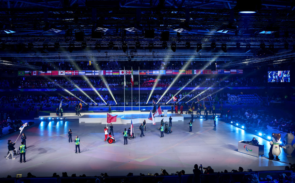 3月6日,中国代表团在米兰-科尔蒂纳冬残奥会开幕式上入场。新华社记者 才扬 摄