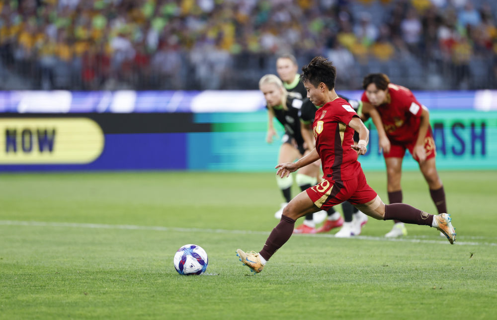 3月17日,中国队球员张琳艳在2026年女足亚洲杯半决赛中点球射门得分。新华社记者 马平 摄