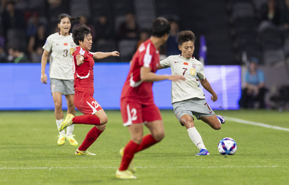 当地时间3月9日,在澳大利亚悉尼举行的2026年女足亚洲杯B组小组赛中,中国队2:1战胜朝鲜队。图为中国队球员王霜(右一)在比赛中。新华社发(胡泾辰摄)