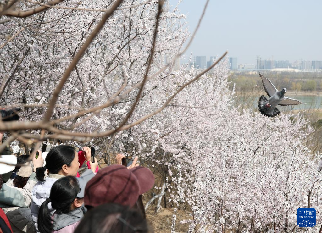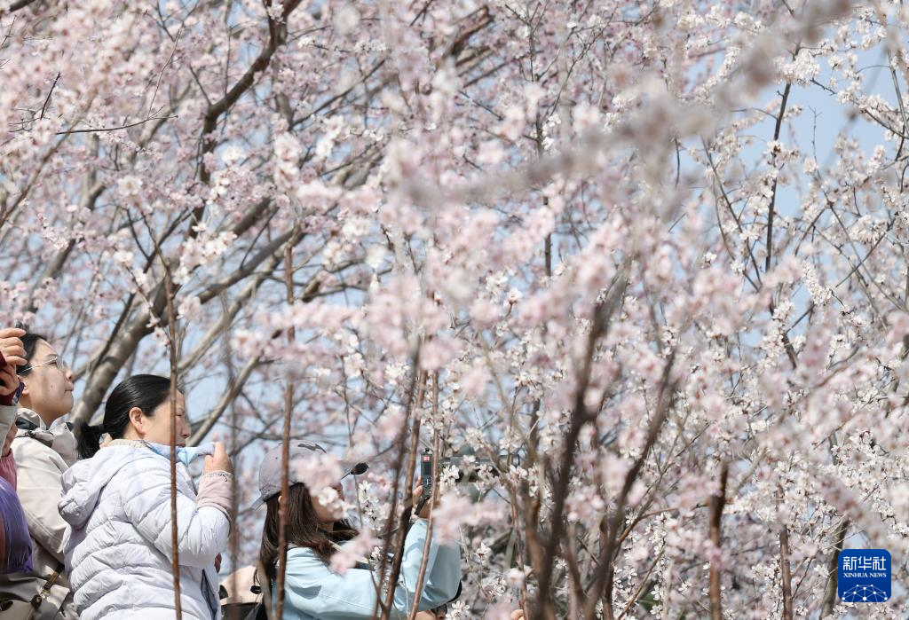 3月21日,游客在北京园博园赏花观景。新华社记者 张晨霖 摄