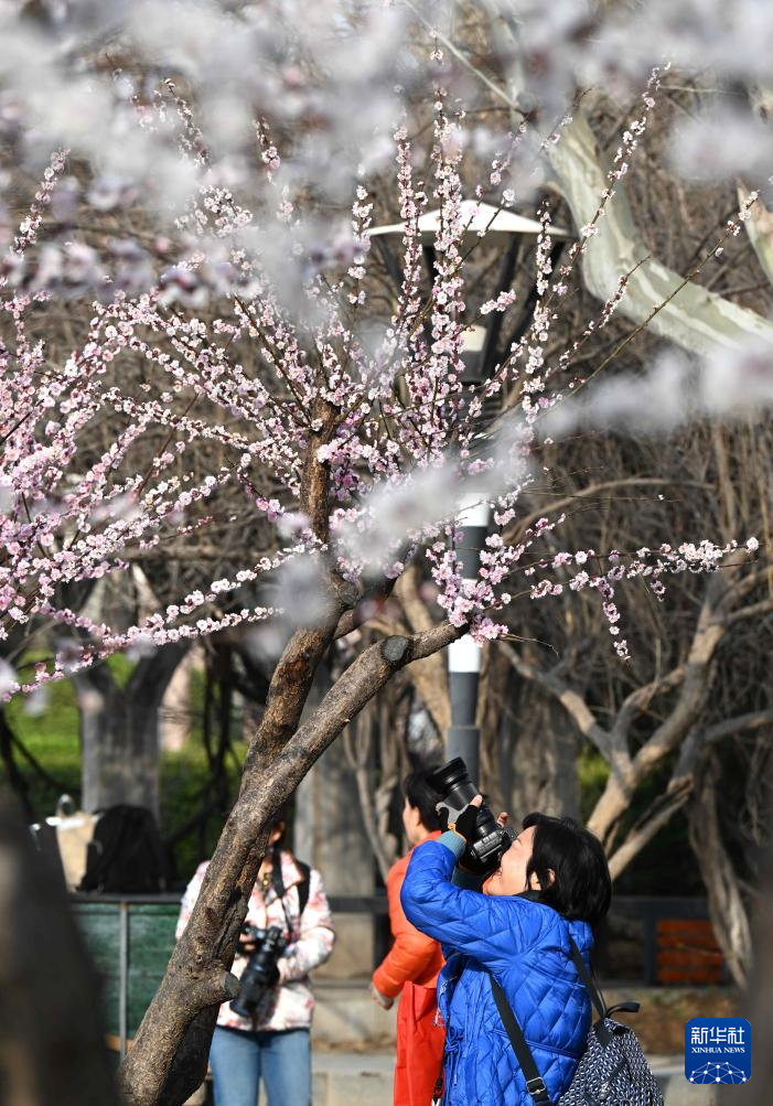 3月21日,市民在河北省石家庄市新华区水上公园拍照。新华社发(陈其保摄)