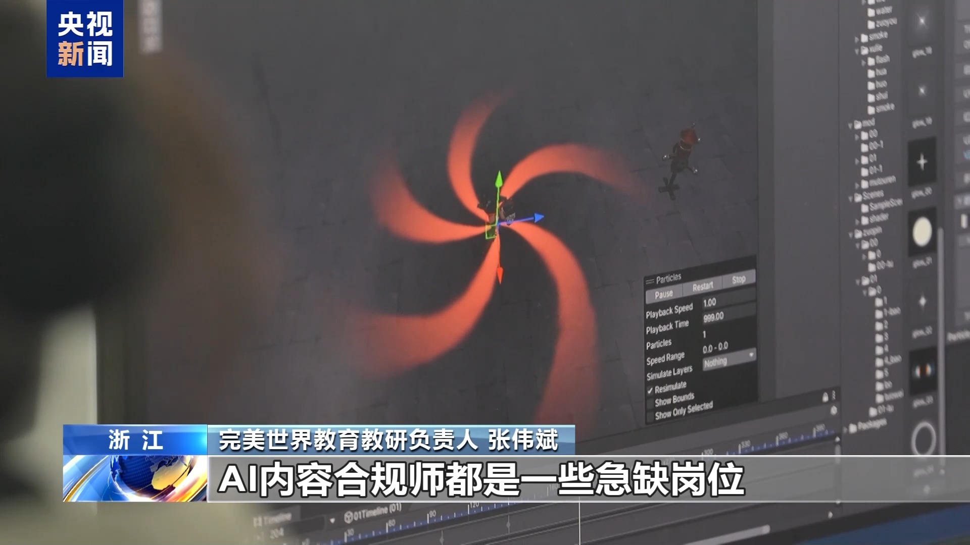 完美世界教育教研负责人张伟斌:一般学员培训一个多月,就会有全国的动漫、游戏、影视公司过来招人,包括AI数字人开发运营,AI内容合规师都是急缺的岗位。