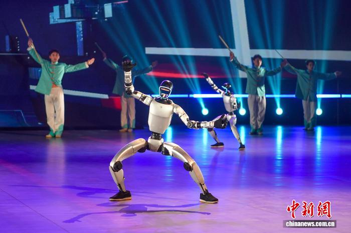 图为开幕式人形机器人武术展演。中新社记者 佟郁 摄
