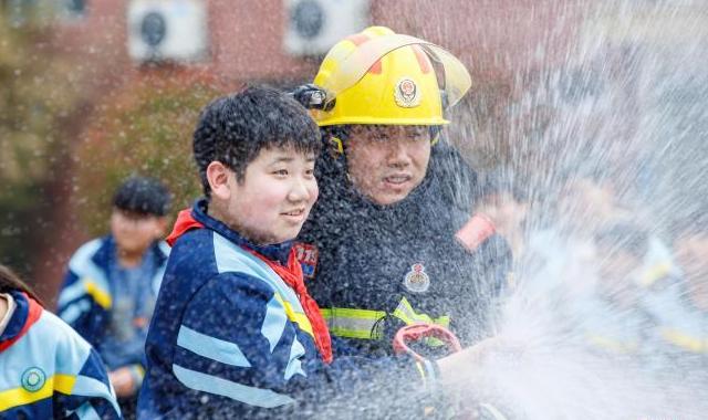 3月26日,在第31个“全国中小学生安全教育日”来临之际,河南商丘睢县消防救援局走进小学校园,开展“安全‘童’行·防患未‘燃’”消防安全进校园主题活动,通过消防知识讲解、消防器材体验、应急疏散演练等形式,切实增强学生消防安全意识。图为学生在消防员指导下体验使用消防水枪。徐泽源摄