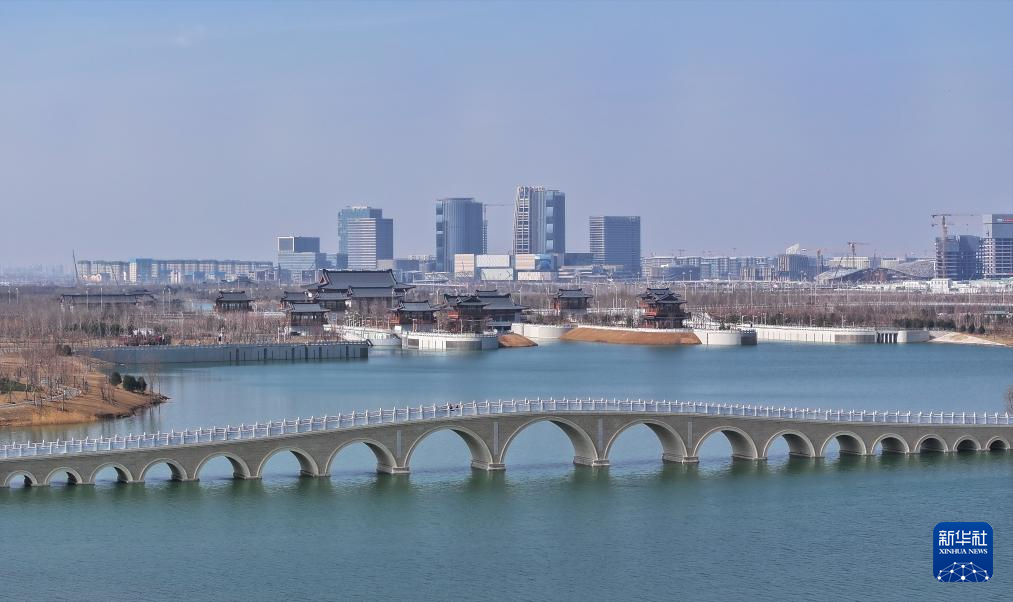 雄安新区启动区景色(3月15日摄,无人机照片)。