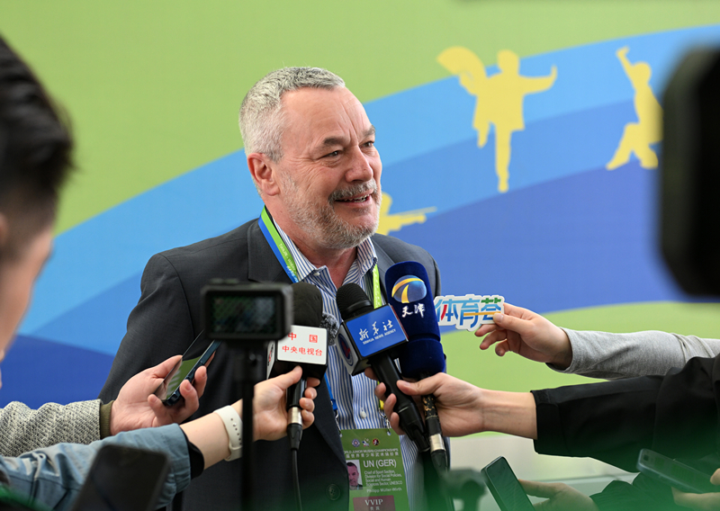 菲利普·穆勒-维特尔在第十届世界青少年武术锦标赛期间接受记者采访。