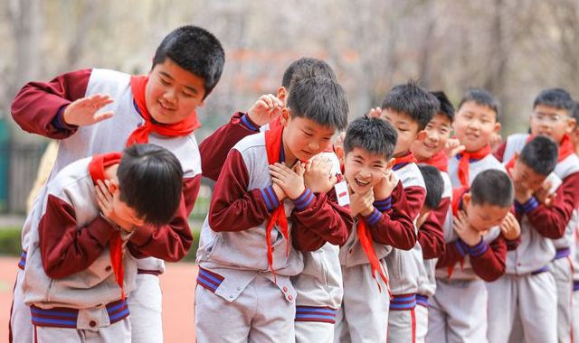 山东青岛文昌学校学生学习海姆立克急救法。通讯员 张鹰 摄