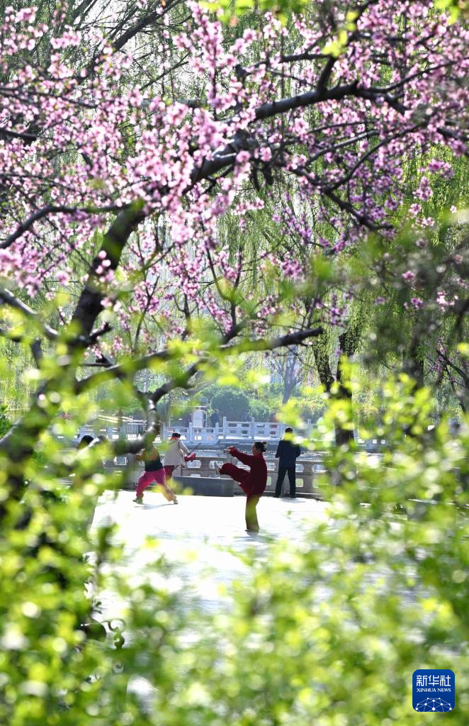 4月1日,市民在河北省石家庄市桥西区元南公园晨练。
