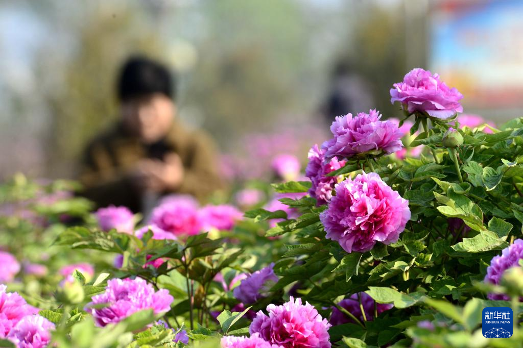 4月1日,游客在河南省驻马店市汝南县天中山文化园内观赏牡丹。