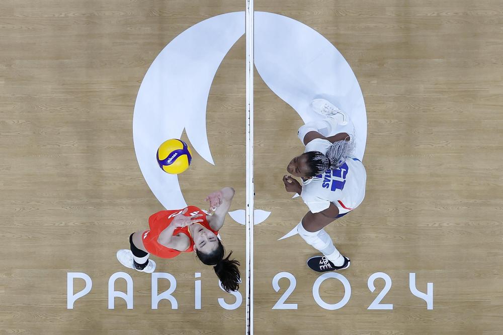 资料图片:中国队球员刁琳宇(左)在巴黎奥运会排球女子小组赛中。新华社记者 徐子鉴 摄