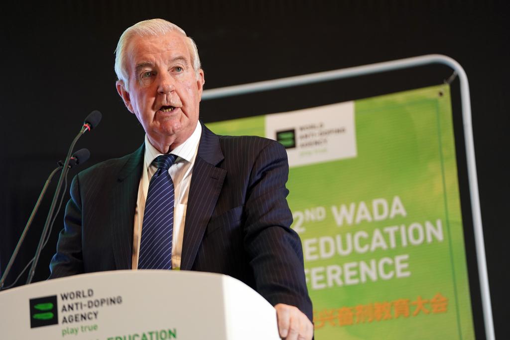 2018年10月24日,时任世界反兴奋剂机构(WADA)主席克雷格·里迪在大会上致辞。当日,第二届全球反兴奋剂教育大会在北京举行。新华社记者鞠焕宗 摄