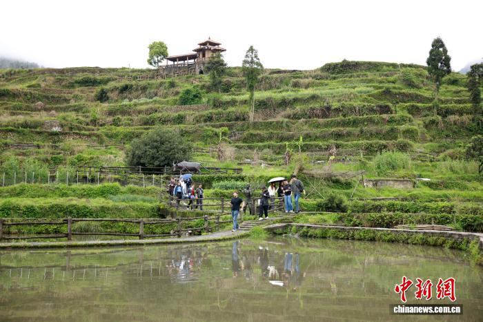 4月12日,浙江省欧美同学会组织浙江大学中国学留学生走进浙江丽水青田方山乡,实地探访首批全球重要农业文化遗产——青田稻鱼共生系统,近距离感受千年农耕智慧的活态传承与保护实践。图为留学生参观稻鱼共生核心保护区。中新社记者孙杨洋 摄
