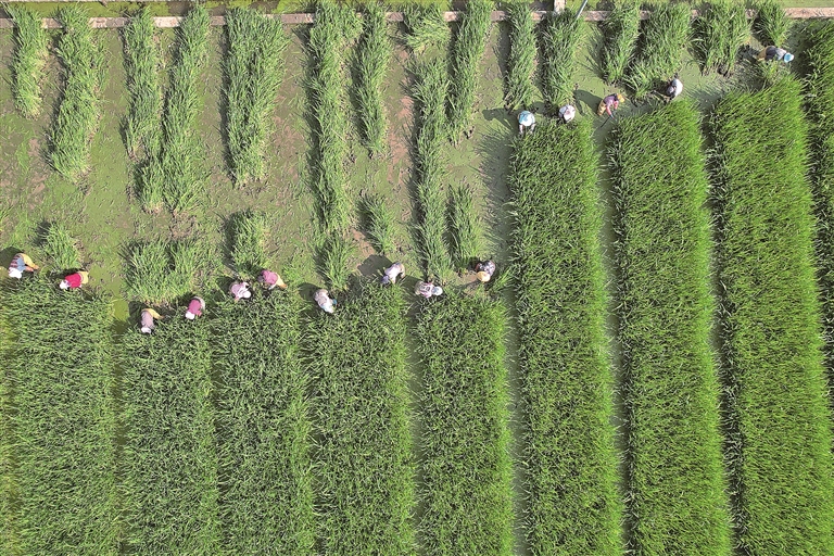 海宁马桥万亩方未来农场位于杭嘉湖平原,承担着种子培育的重要工作。你看,在油菜种植基地,空天地一体化监测系统正在及时分析菜苗长势,针对性提供补肥措施;在杂交水稻制种基地,栽好的稻种一眼望不到头,数字系统正定时监测着水稻长势,为新一年的研发升级积累数据……